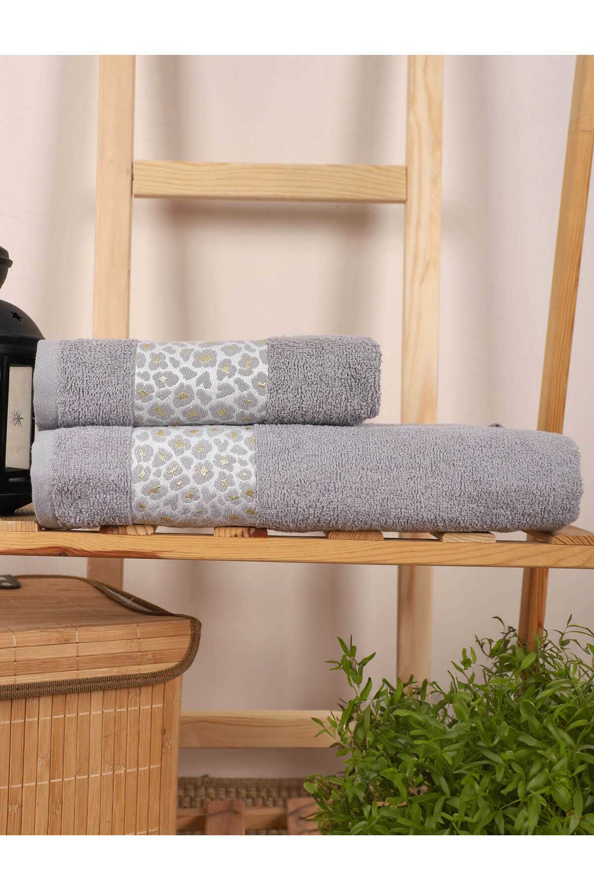 2 Parça %100 Pamuklu Banyo Havlu Seti Leopar Desen Kahve