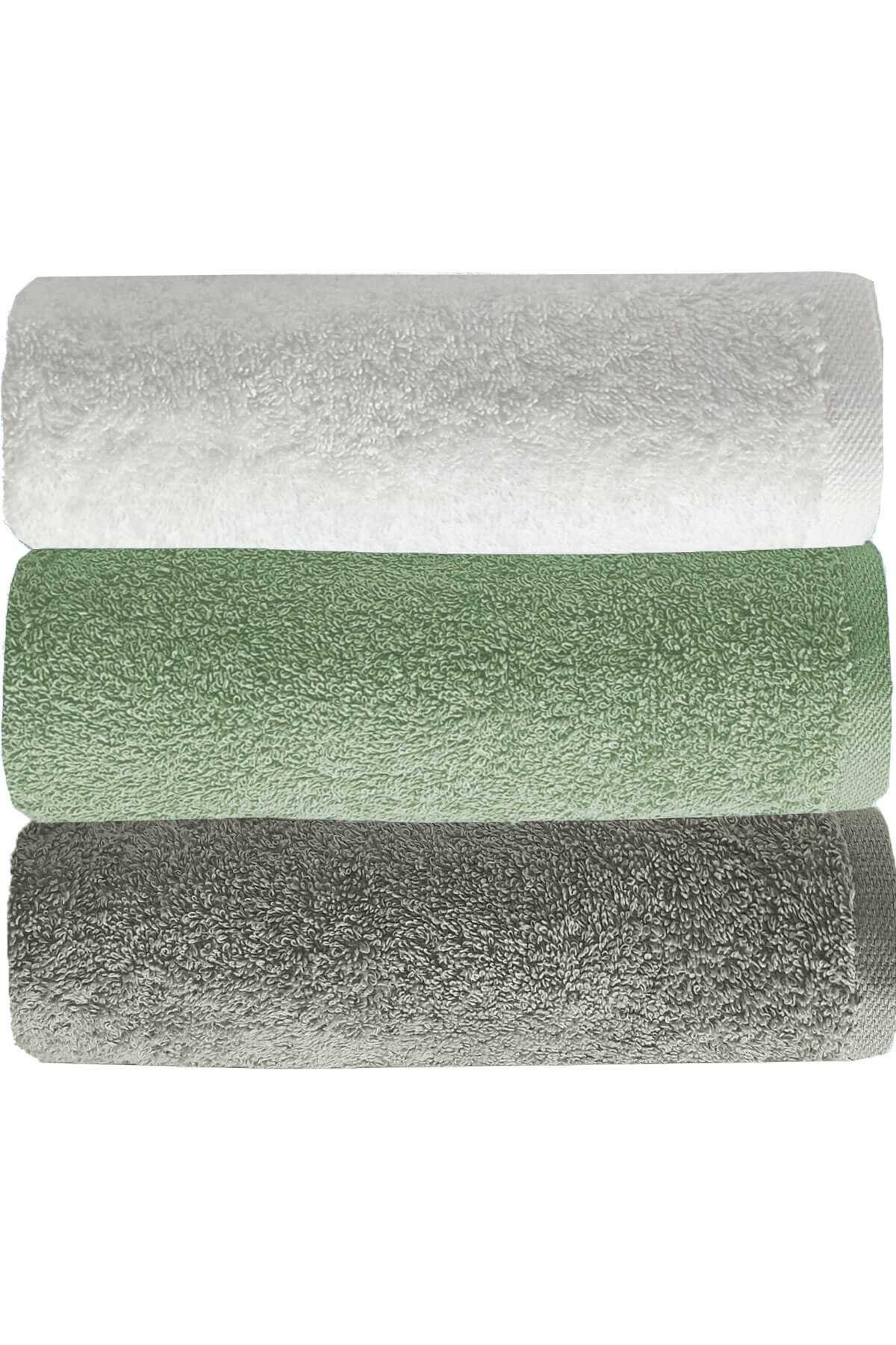3 Farklı Renk Seçeneği: Gri, yeşil ve beyaz (Her bir renkten 1 er adet toplamda 3 adet havlu bulunmaktadır.