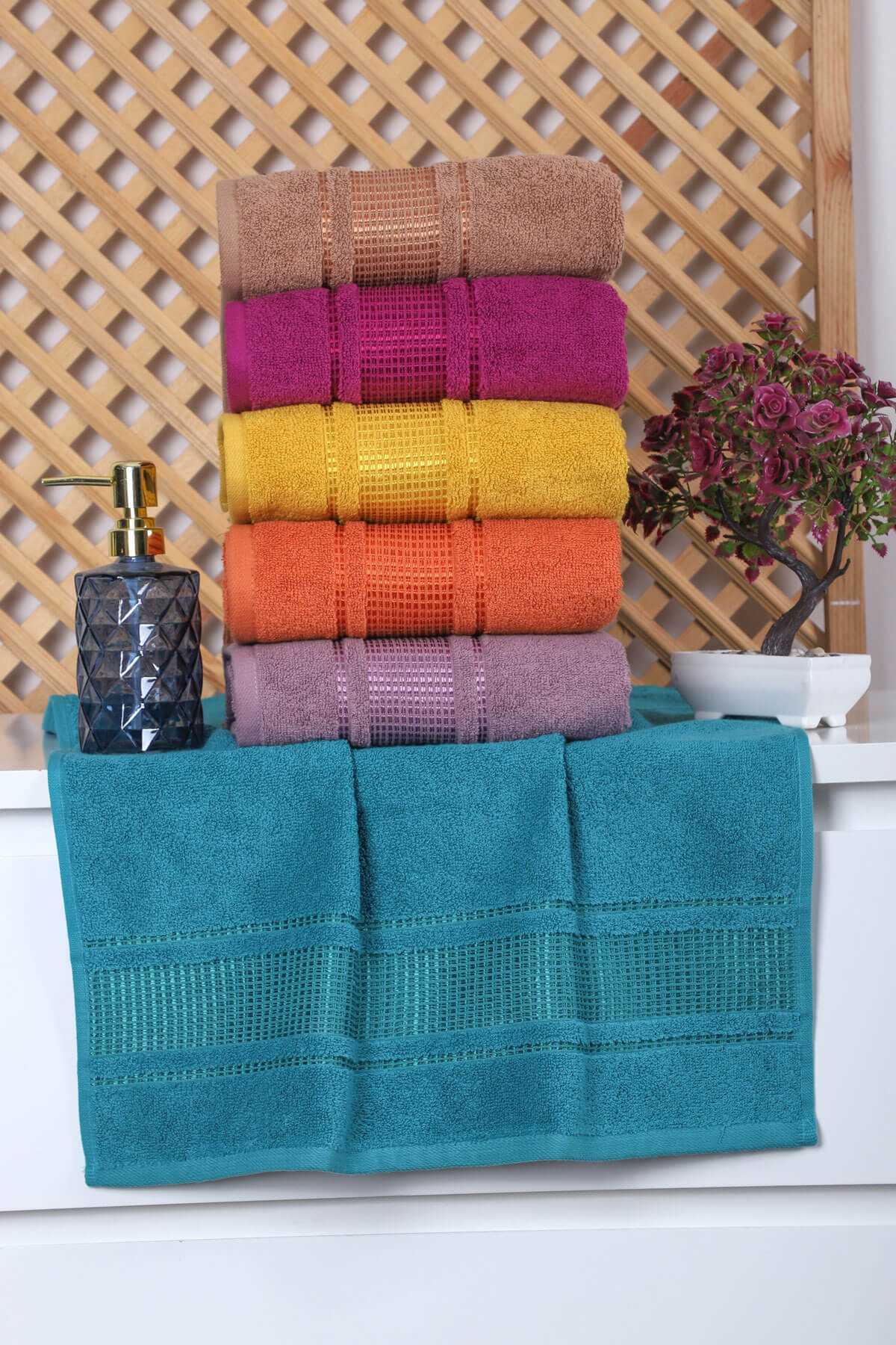 4 lü El Yüz Renkli Havlu Seti %100 Pamuk 50x90 Cm Kemer-1