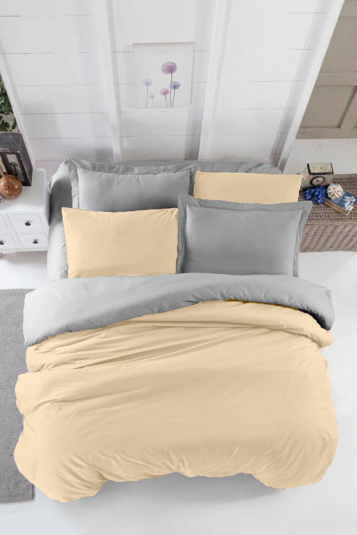 Çift Kişilik Lastikli Çarşaflı Nevresim Takımı Pamuklu Four Season Pudra Gri