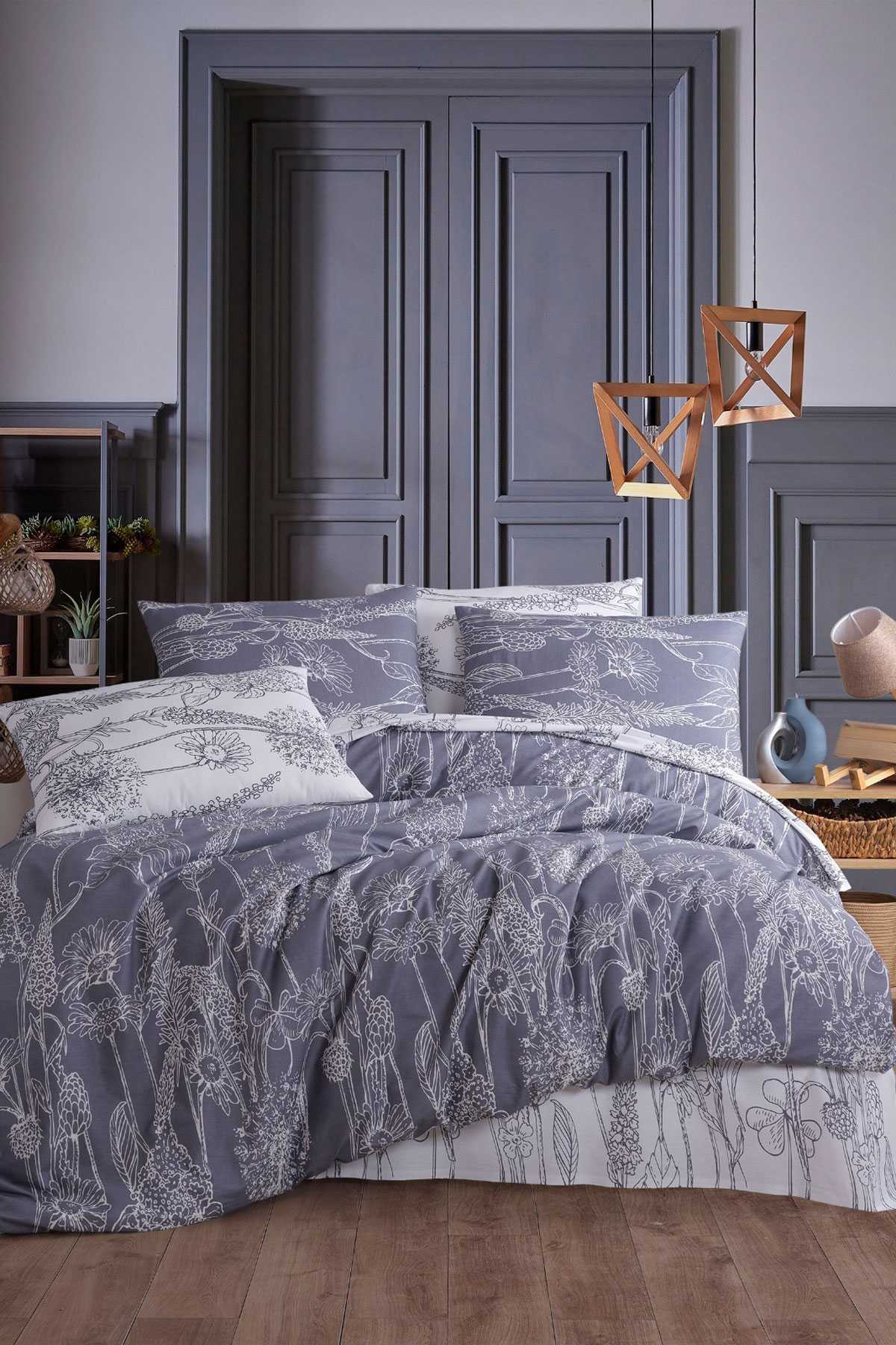 Çift Kişilik Pamuklu Nevresim Takımı Sarmaşık Bej