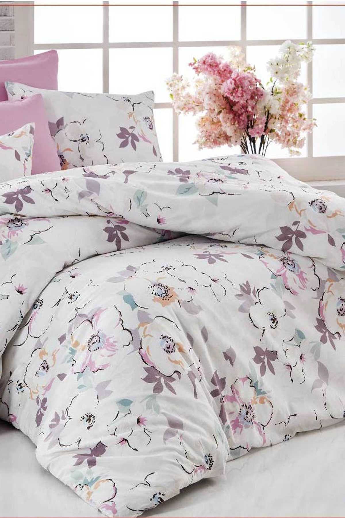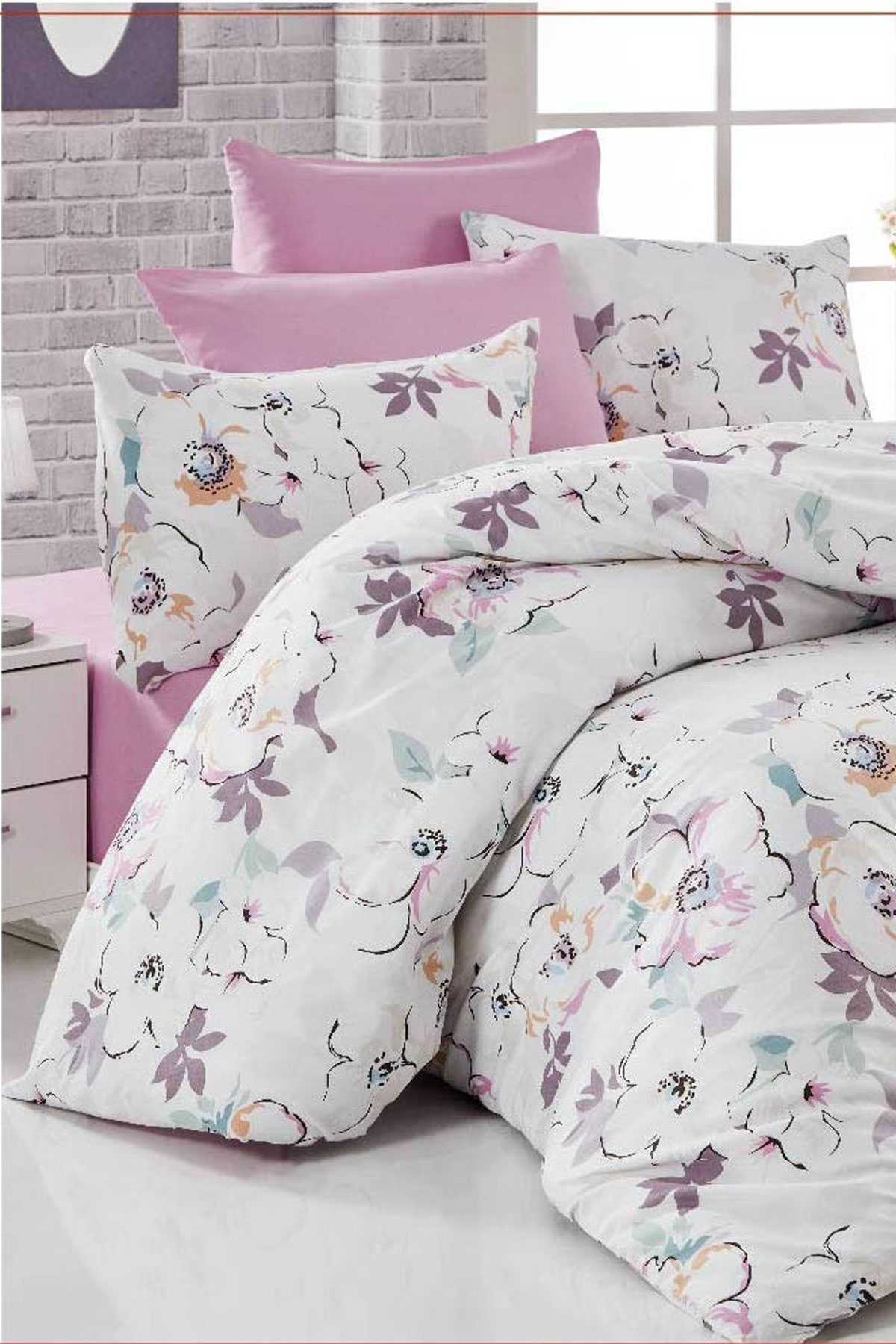 Pembe Çiçek Desenli Pamuklu Tek Kişilik Nevresim Takımı