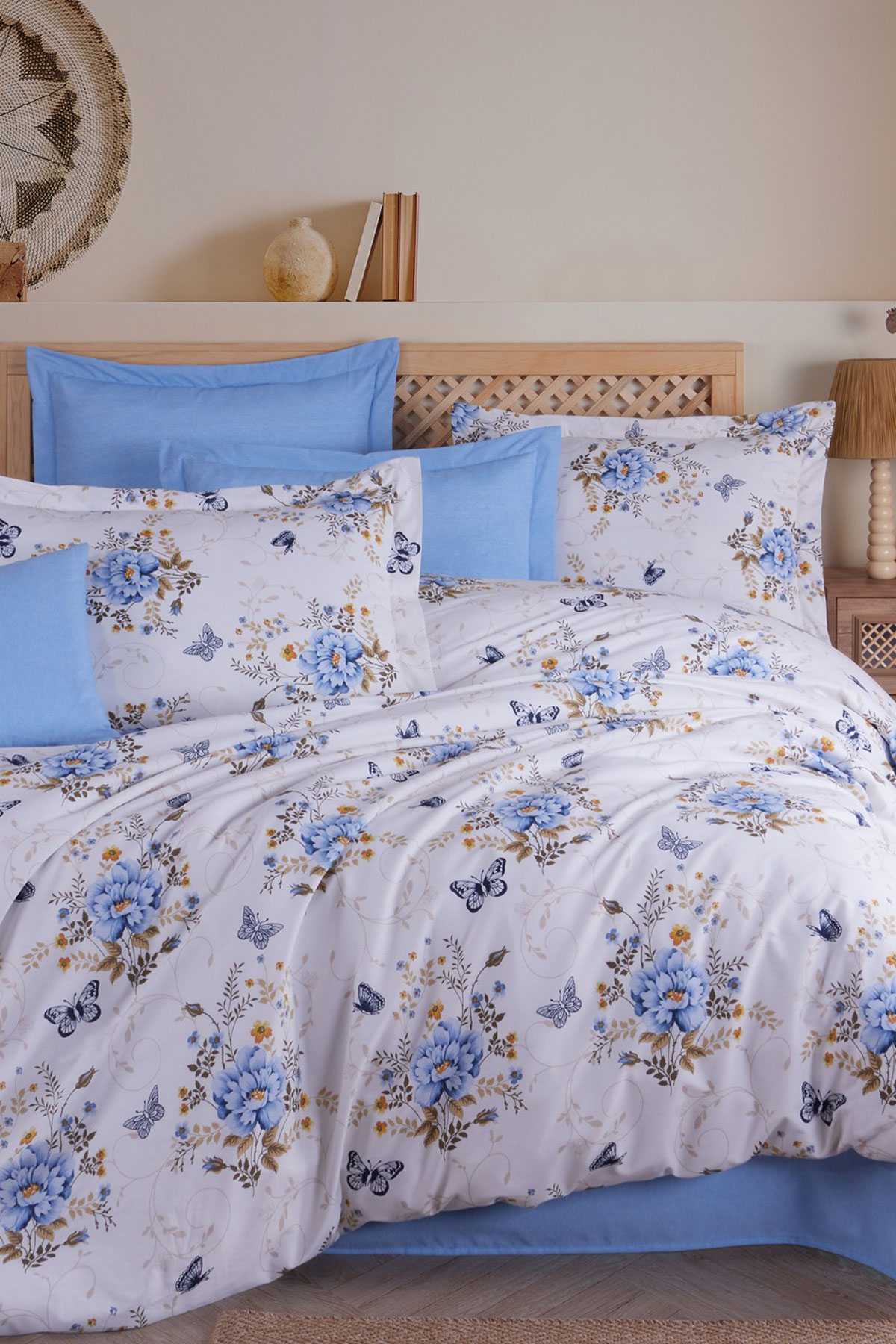 Takım, 200x220 cm boyutlarında nevresim, 220x240 cm boyutunda çarşaf ve 50x70 cm ölçülerinde 2 adet yastık kılıfı ile komple bir yatak takımı oluşturur.