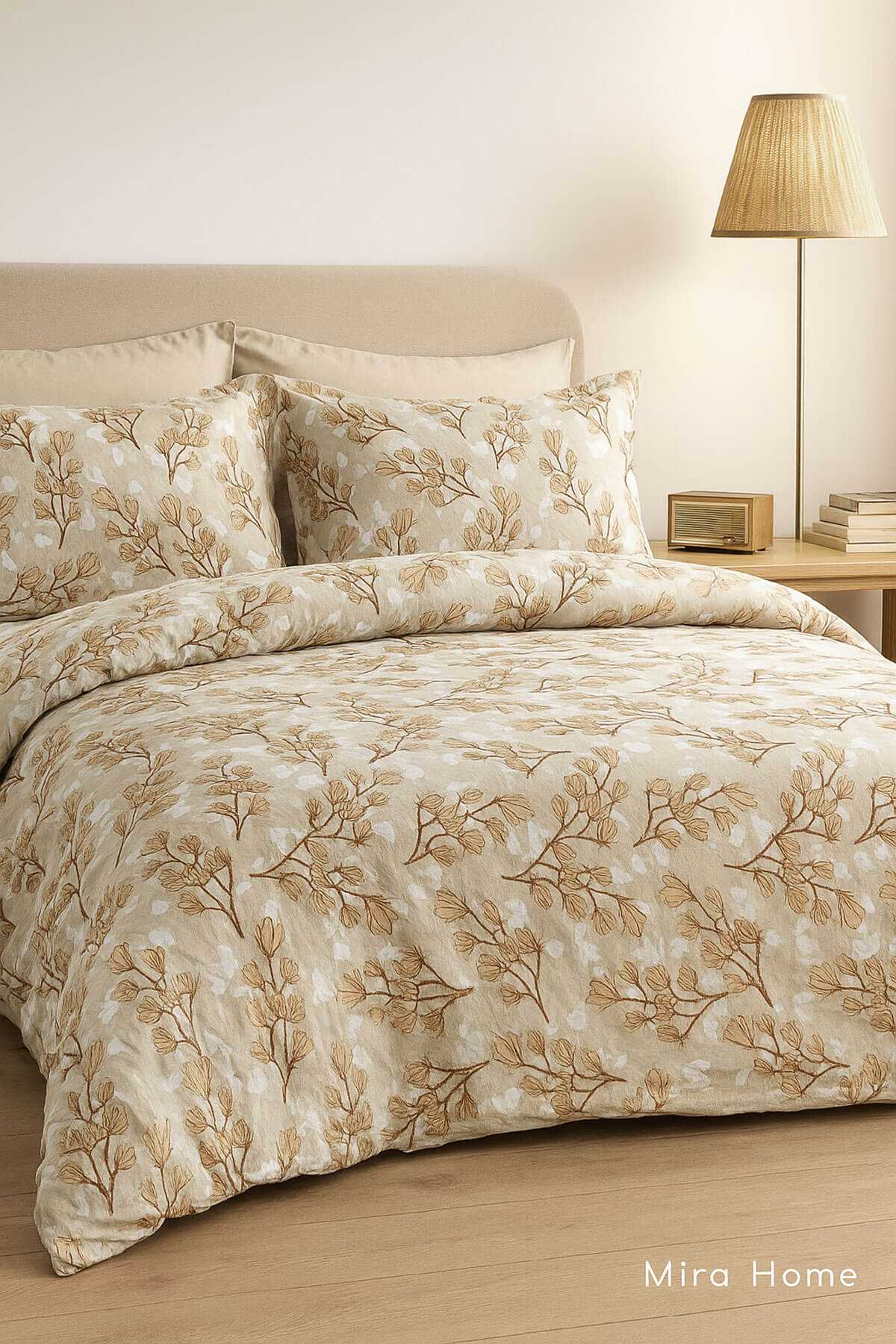 Doğallığı ve sıcak tonları bir araya getiren kahverengi yaprak desenli nevresim takımı, yatak odanıza huzurlu ve şık bir hava katıyor. Yumuşak dokusu sayesinde cildinizde rahatlık hissi bırakır ve dört mevsim kullanıma uygundur. Modern ve zarif tasarımı ile doğadan ilham alan bu set, yaşam alanınızı daha sakin ve estetik bir ortama dönüştürür.