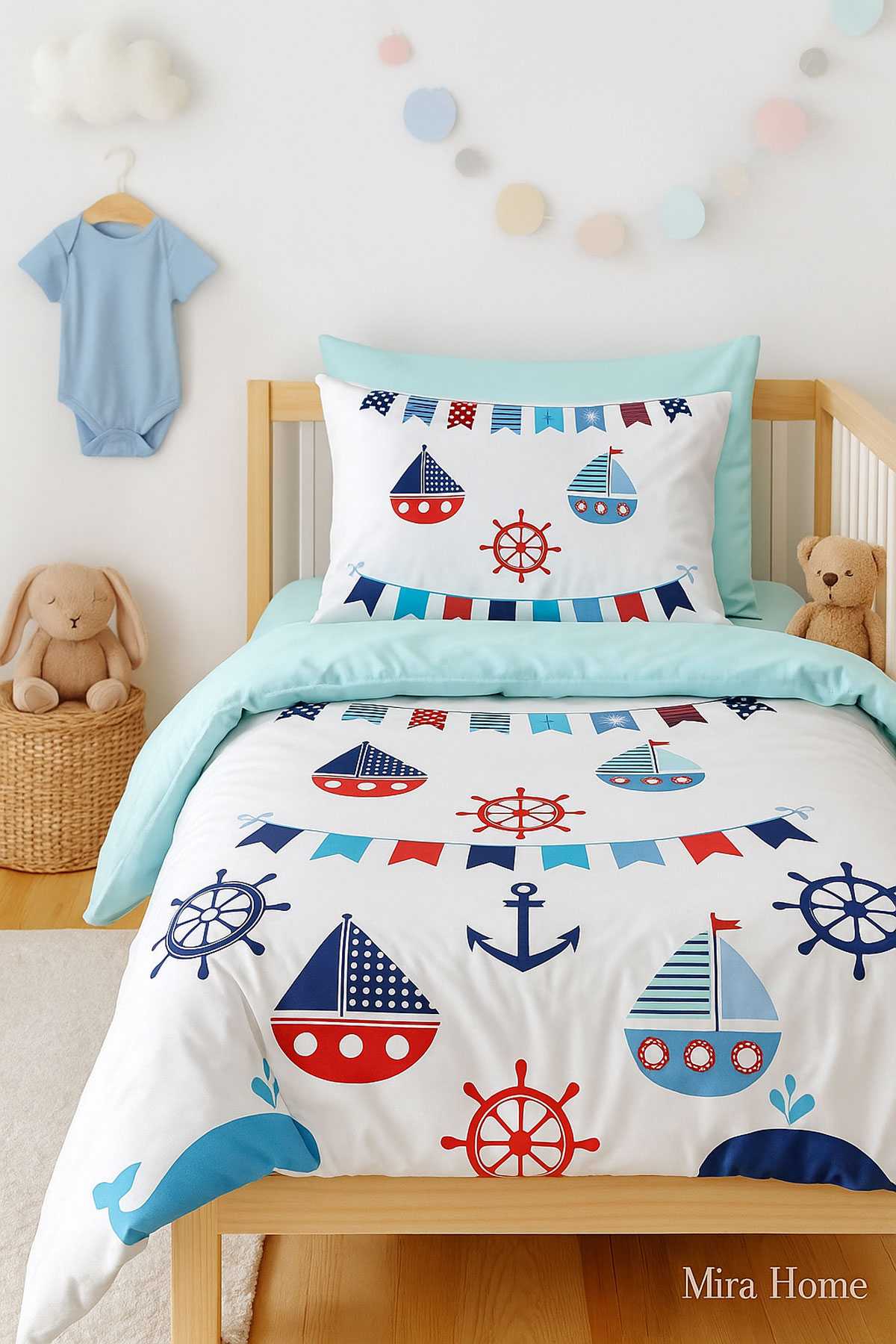 Dijital Baskılı 3d Pamuklu Yenidoğan Bebek Nevresim Takımı Cute Gnome Blue