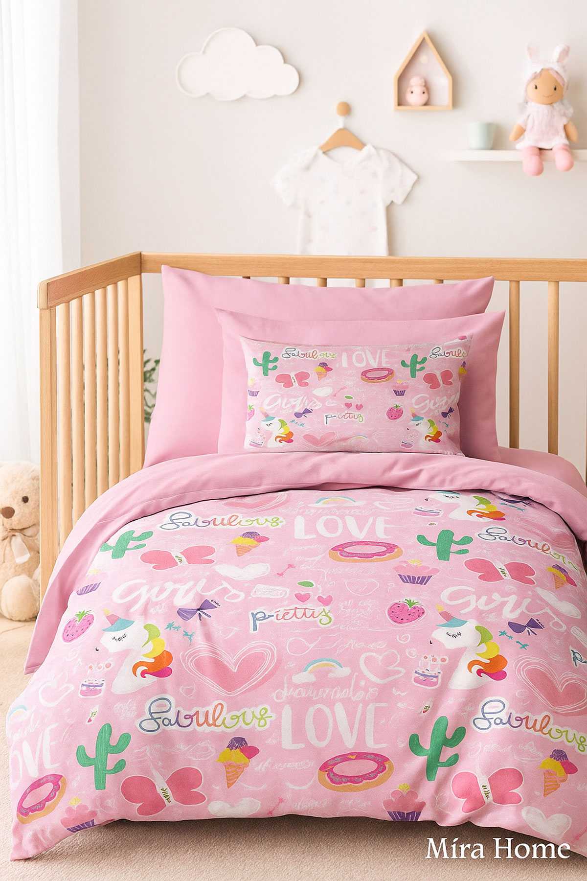 Yenidoğan Kız / Erkek Unisex Bebek Nevresim Takımı %100 Pamuklu Gri Tavşan