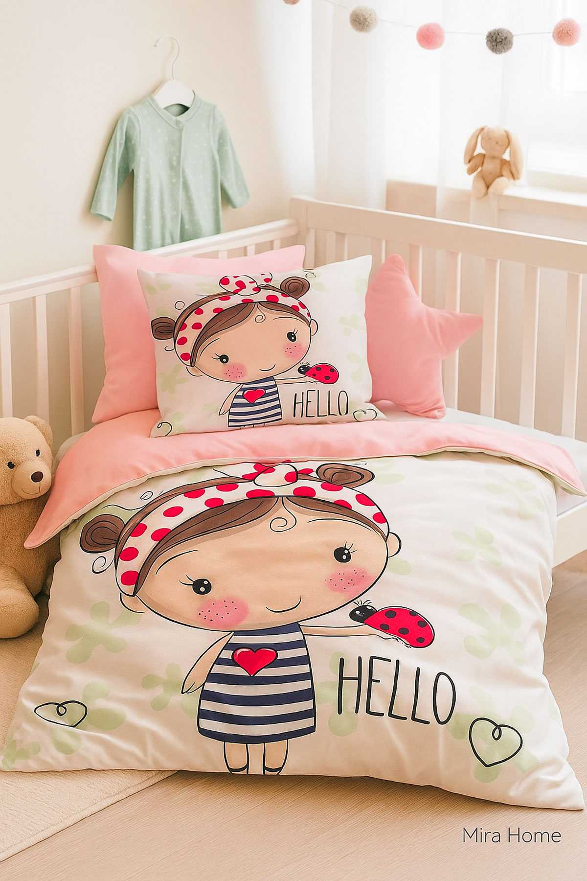 Dijital Baskılı 3d Pamuklu Yenidoğan Bebek Nevresim Takımı Love Me Everyday