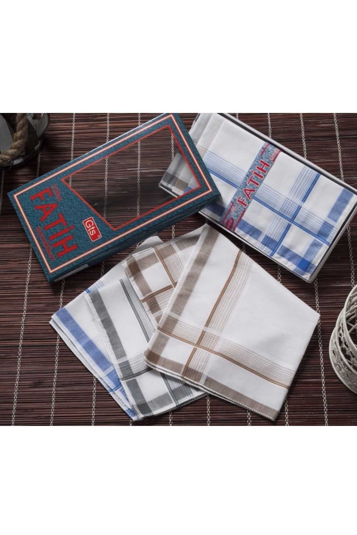 Sarı Kutulu 46x46 cm 12 Adet Kumaş Mendil-Beyaz