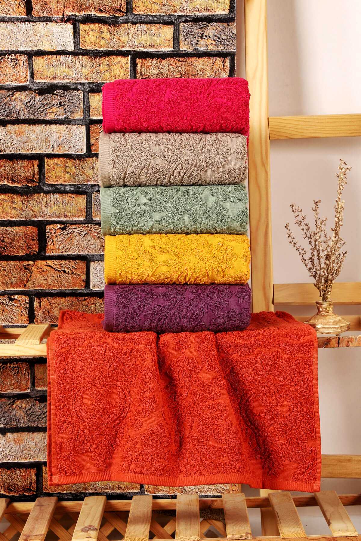 Mira Home 6'lı El Yüz Jakarlı Havlu Seti - Doku Desen