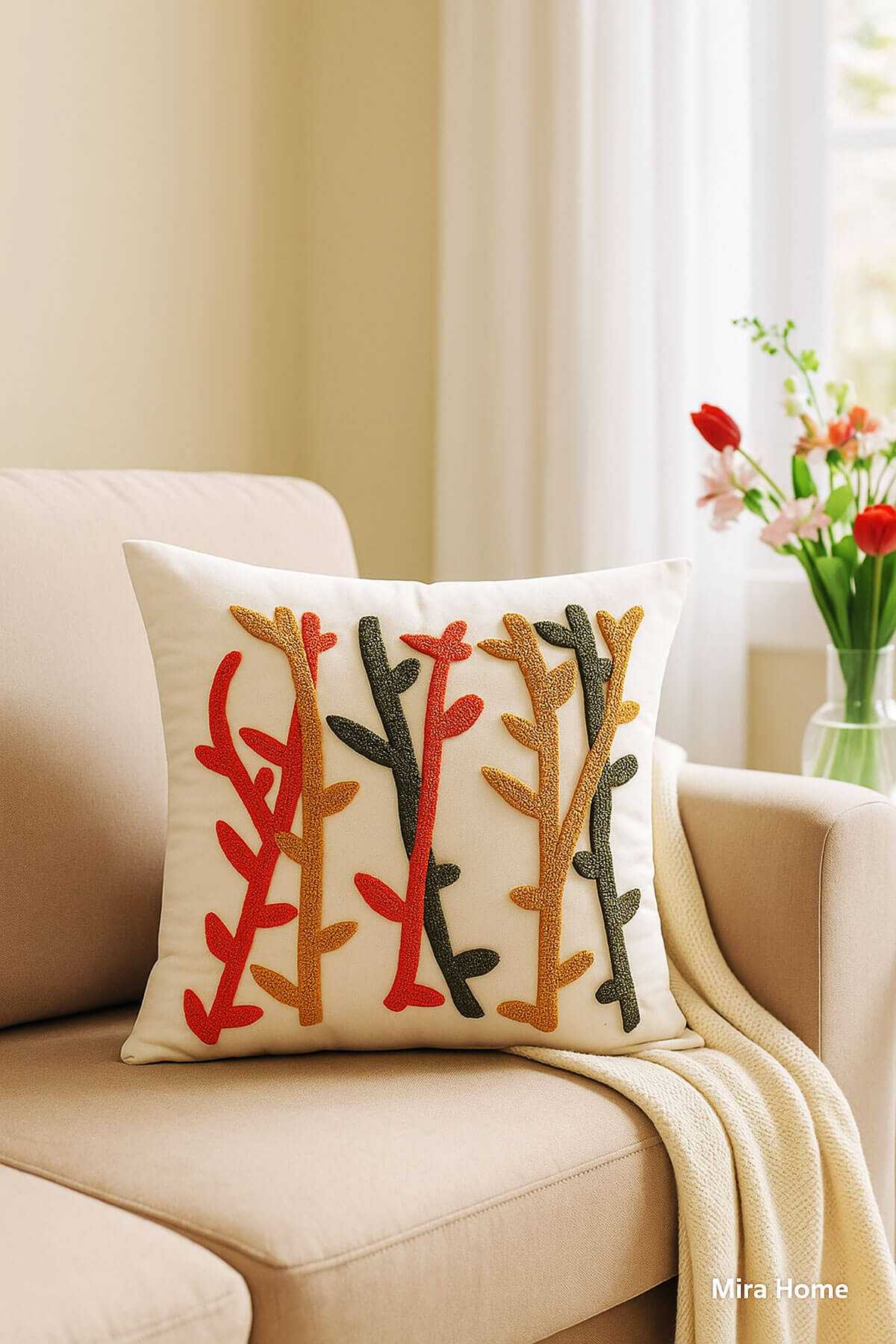 Mira Home dekoratif punch nakışlı kırlent kılıfı, farklı renk seçenekleri ve desen alternatifleri ile evinize uyum sağlayacak bir tasarım sunar. Her zevke hitap eden renk paleti, kırlent kılıfının dekorasyonunuza kolayca adapte olmasını sağlar. İster minimalist bir tarzı, ister daha canlı ve renkli bir ortamı tercih ediyor olun, bu kırlent kılıfı her ortamda harika bir uyum yakalar. Ayrıca, şık nakış detayları da kırlent kılıfının zarif bir hava katmasını sağlar.