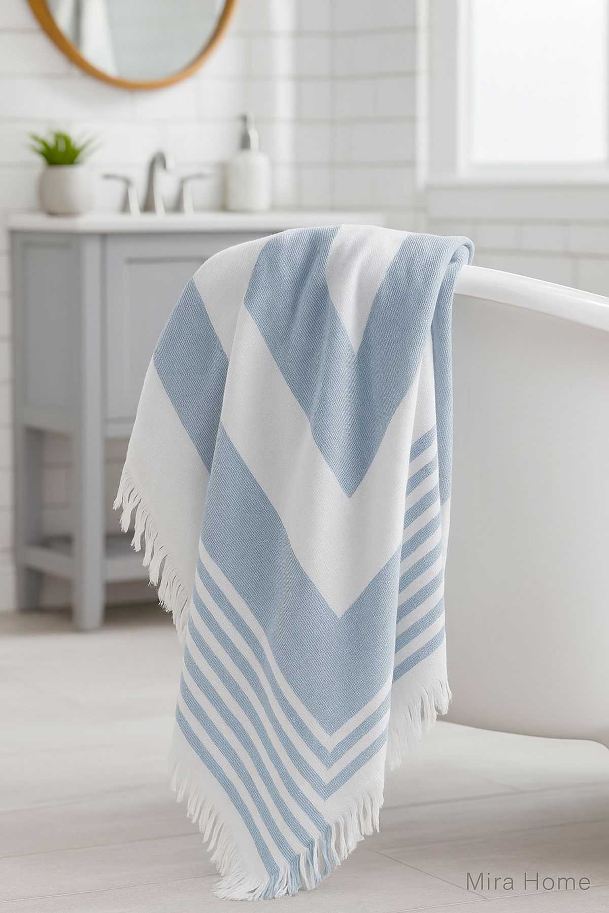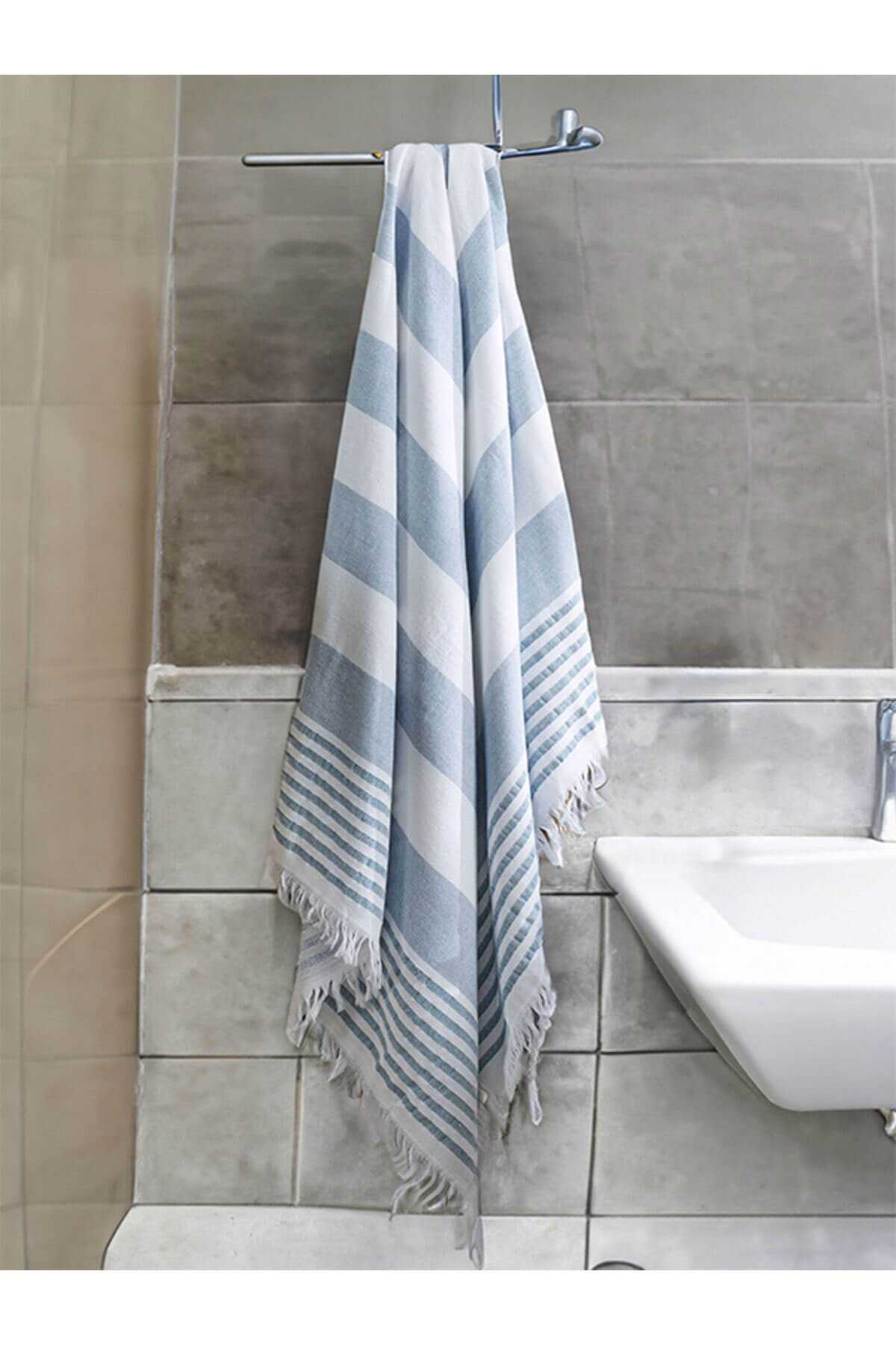 2 Li Banyo Ayak Havlusu %100 Pamuk 50X70 Cm Menesch Mavi
