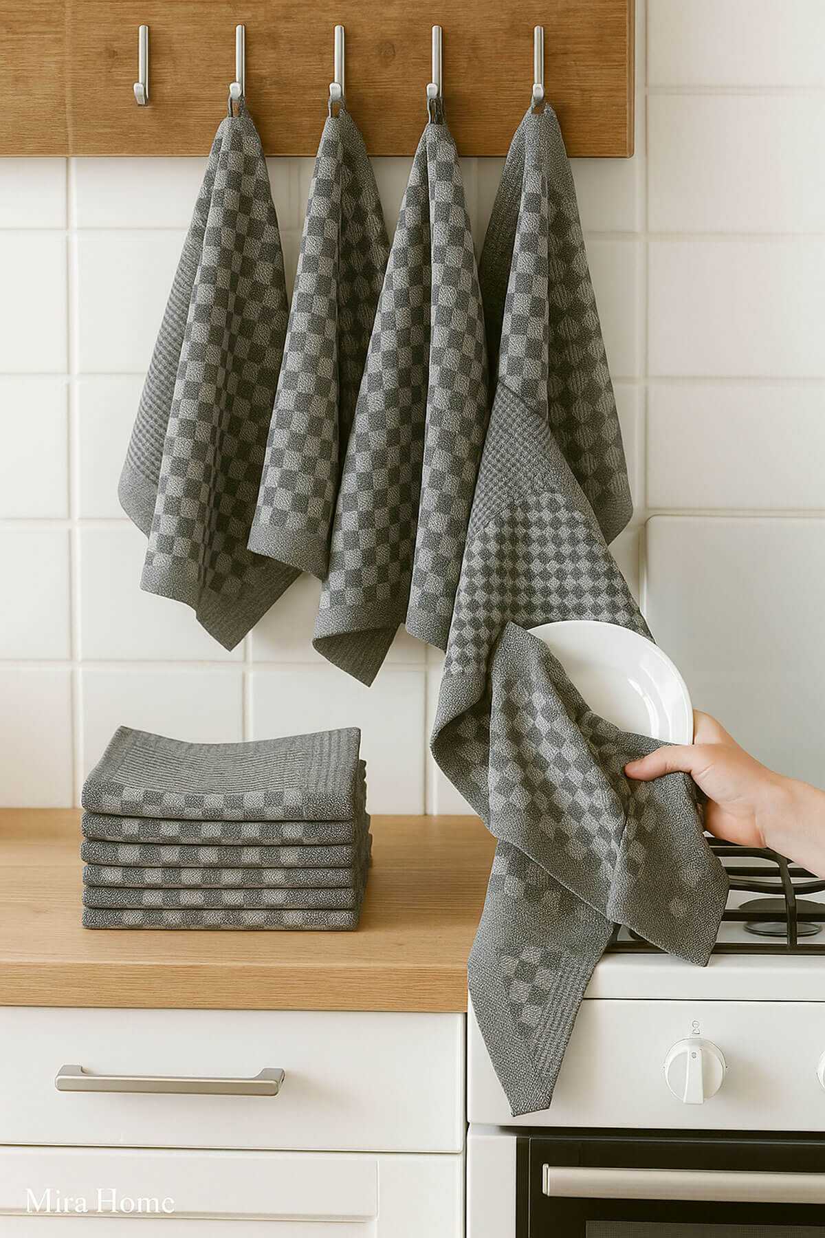 10 lu Dama Desenli Mutfak Kurulama Bezi 50x70 Cm Somon