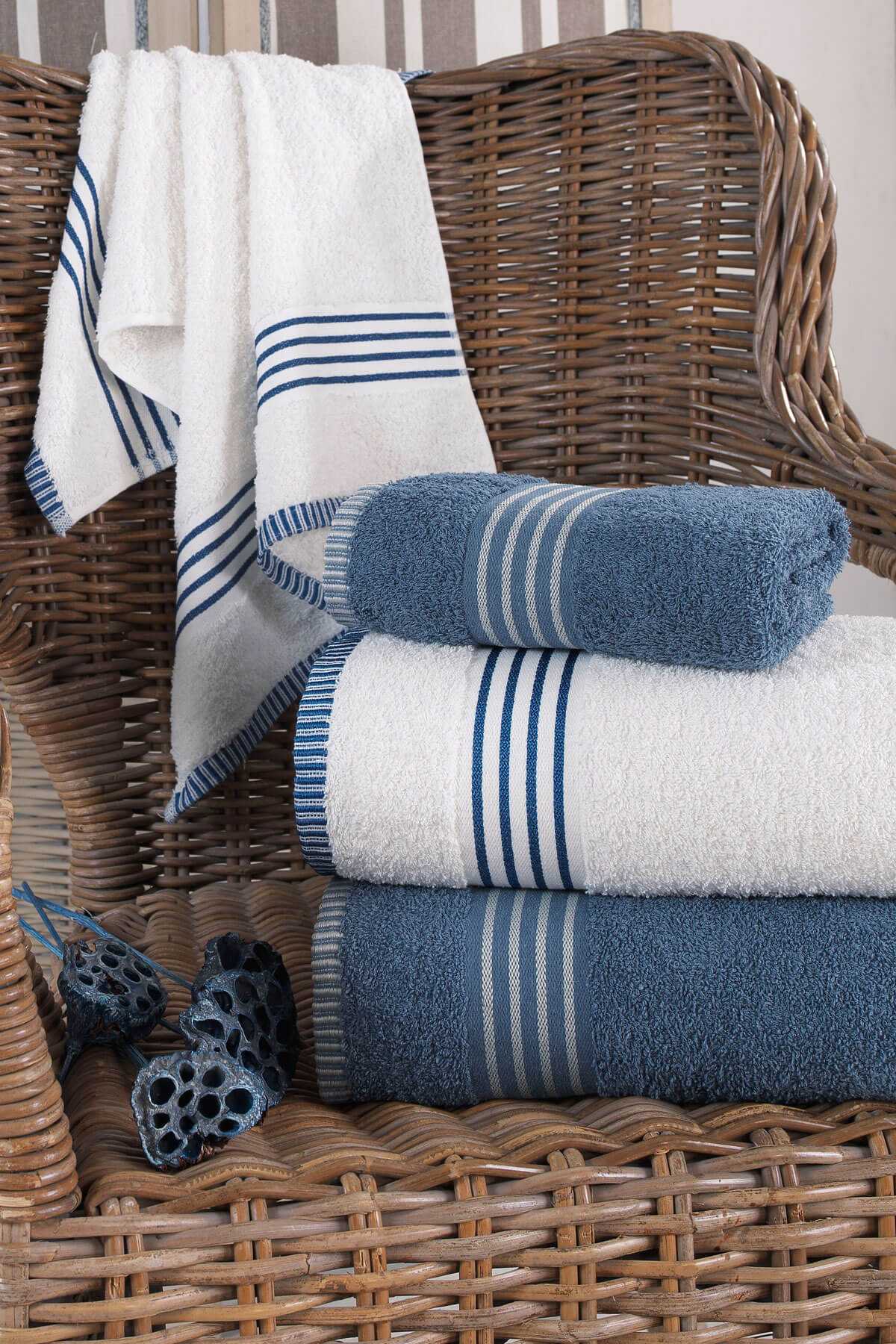 4 lü Kadın Erkek Banyo Havlusu Takımı Oscar Mavi Krem