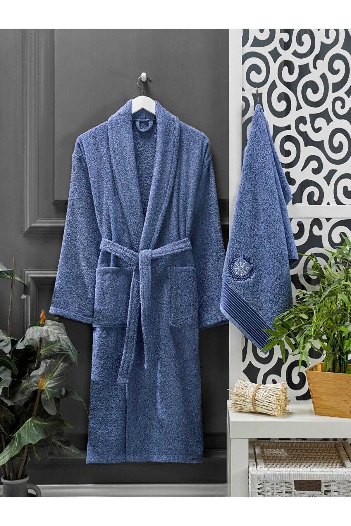 4 Parça Aile Bornoz Seti Kadın Erkek Havlulu Bornoz Takımı Gri Lavanta