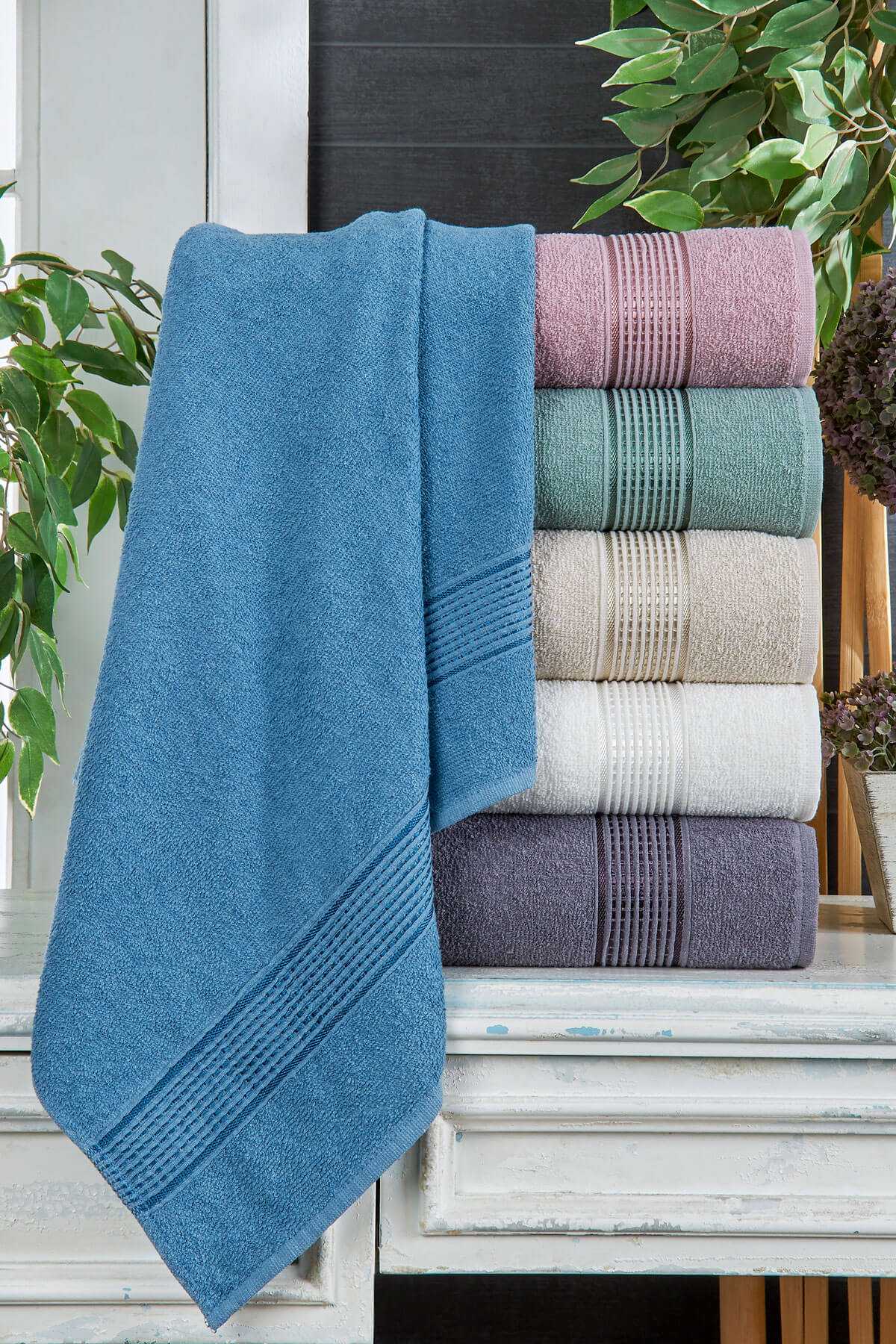 Kadın Havlulu Banyo Bornoz Takımı %100 Pamuklu Lavanta