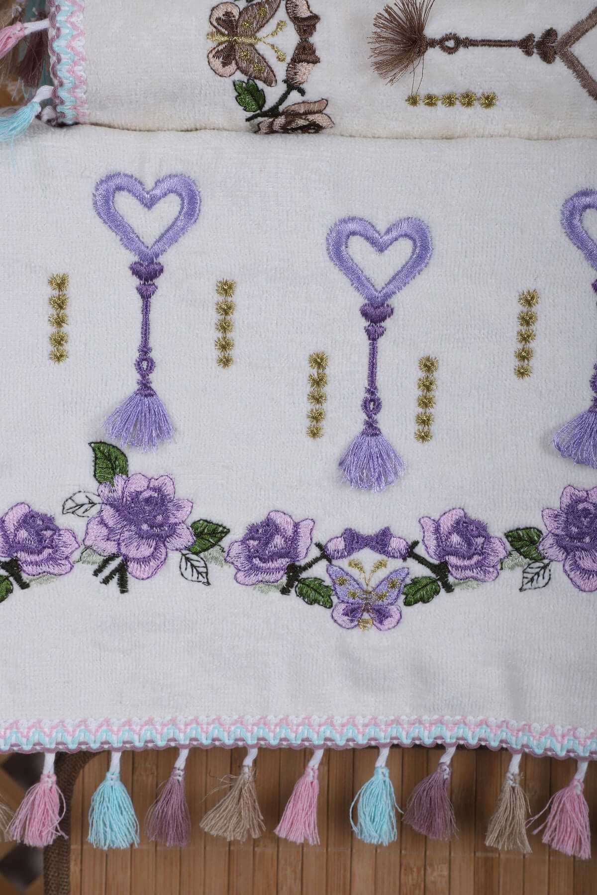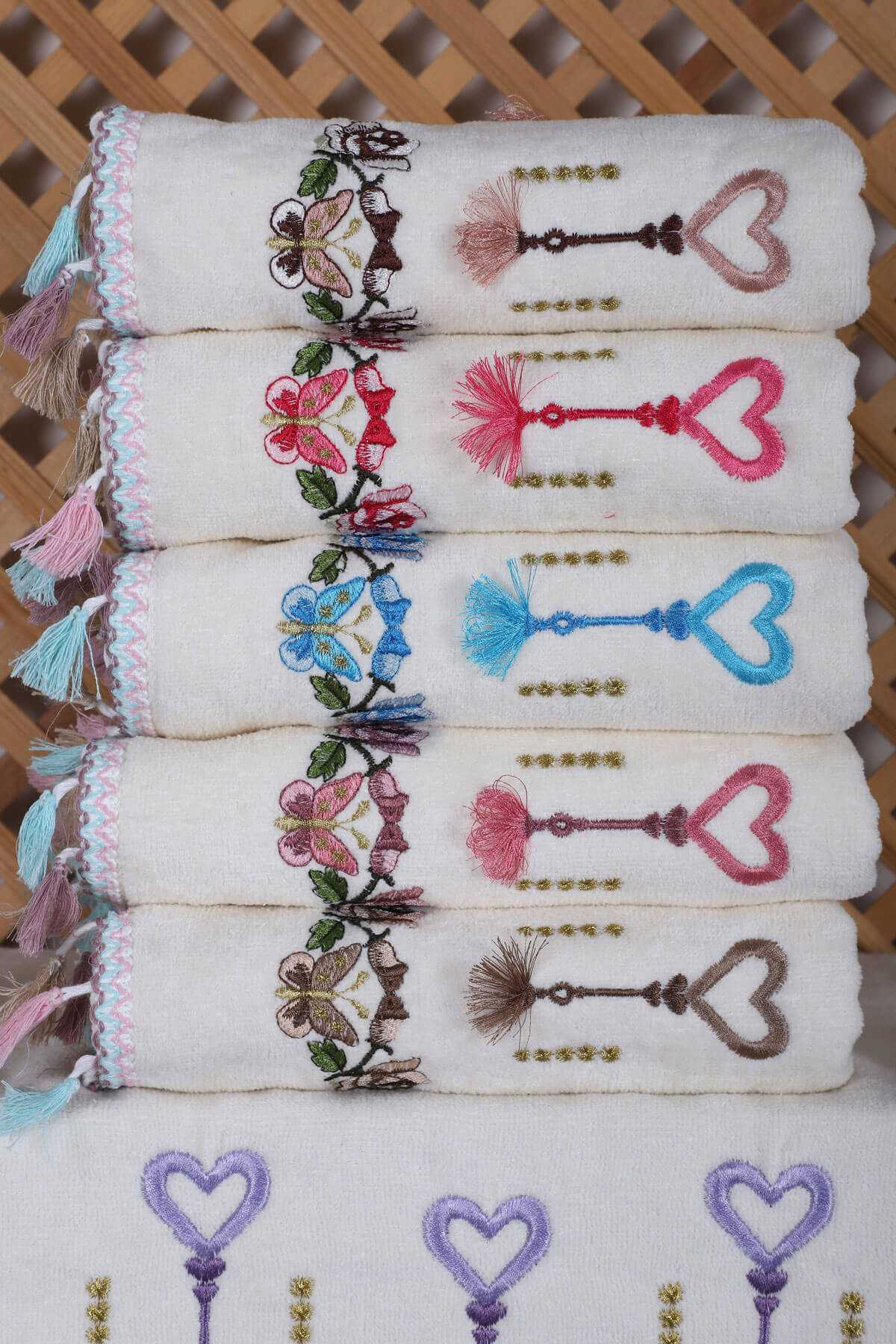 6 lı Kalp Çiçek Nakışlı Mutfak Havlu Seti