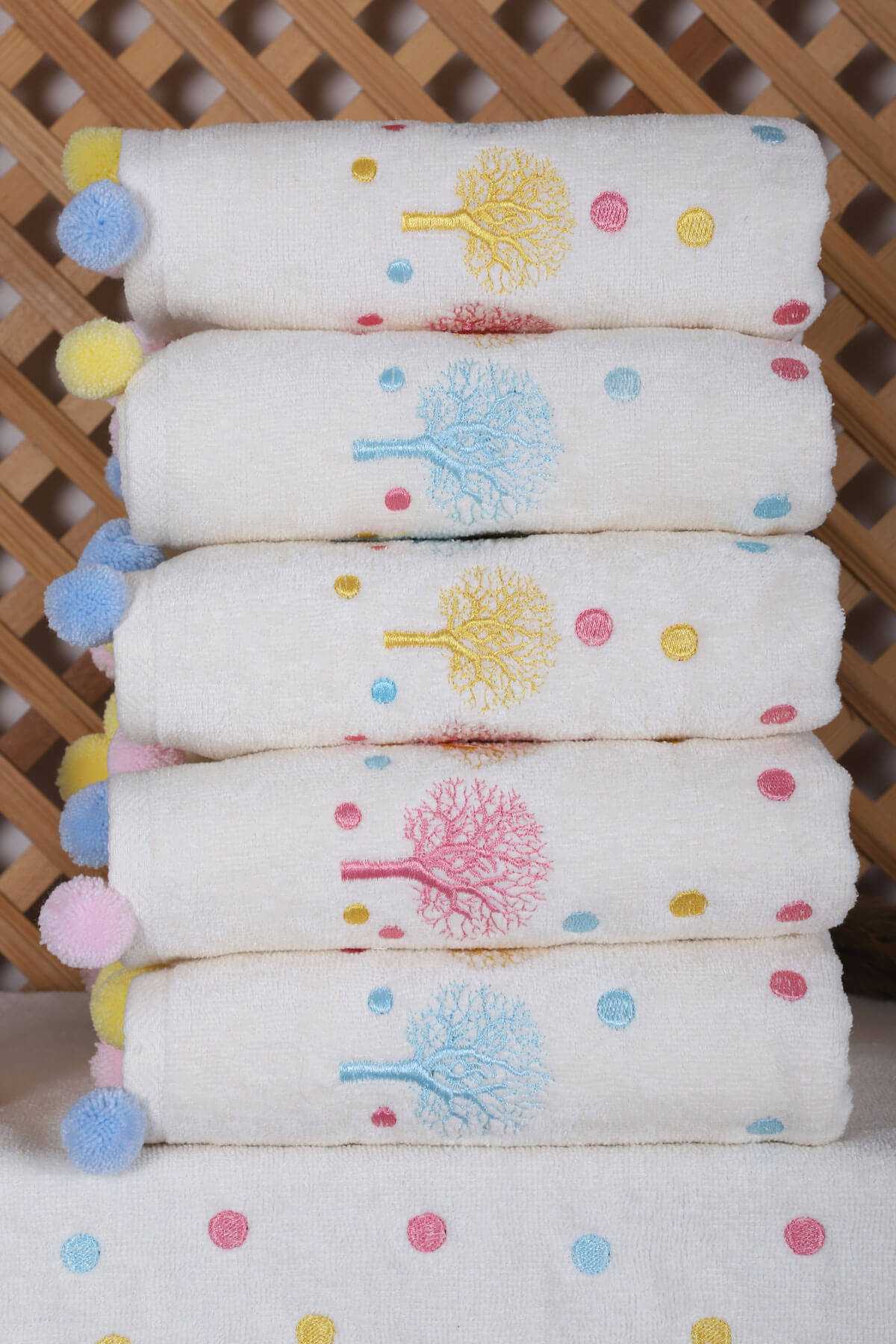 6 lı Kalp Çiçek Nakışlı Püsküllü Mutfak Havlusu Takımı 30 x 50 Cm