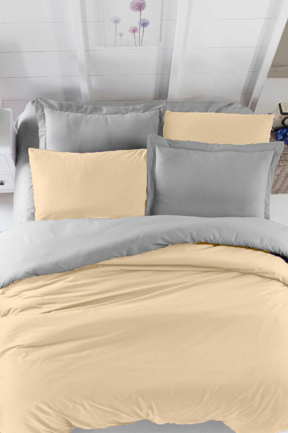 Çift Kişilik Lastikli Çarşaflı Nevresim Takımı Pamuklu Four Season Pudra Gri