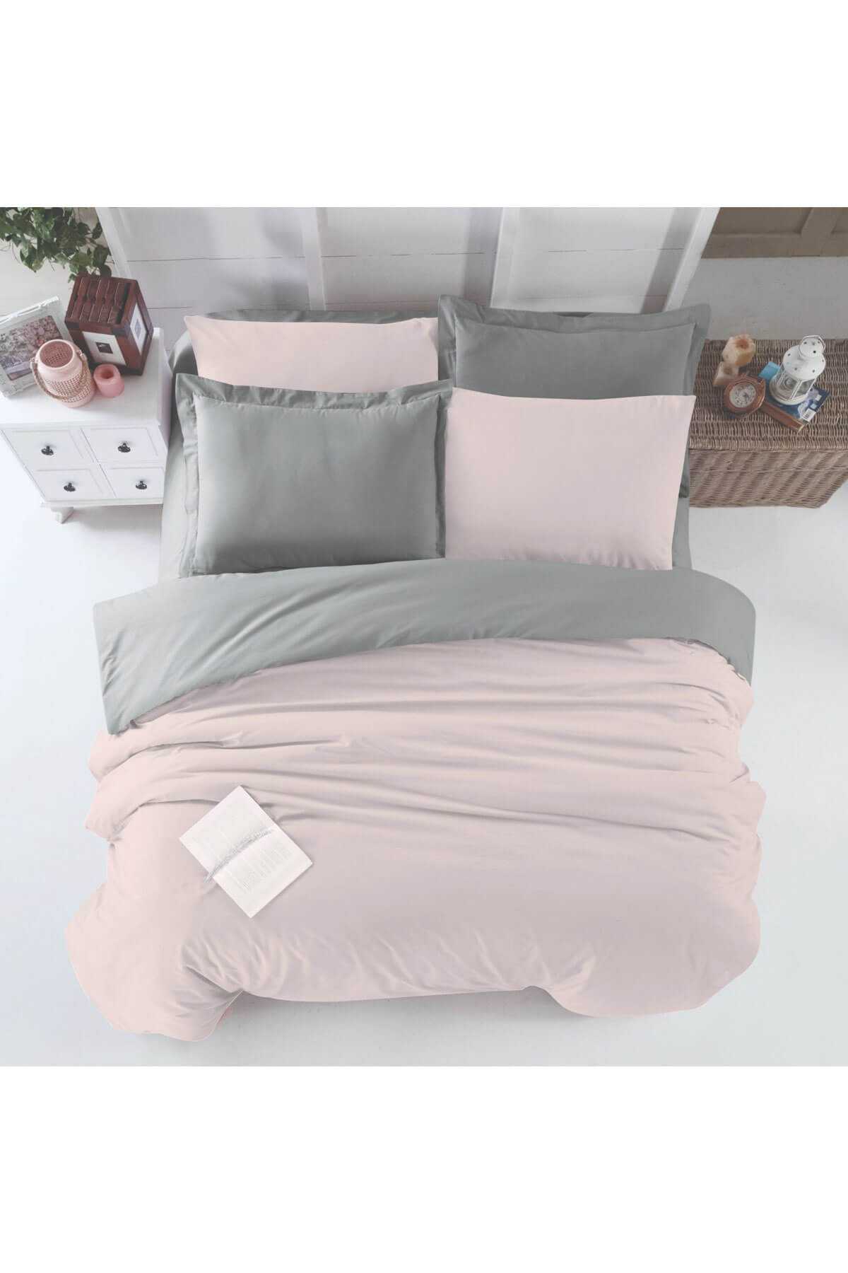 Çift Kişilik Lastikli Çarşaflı Nevresim Takımı Pamuklu Four Season Beyaz Gri
