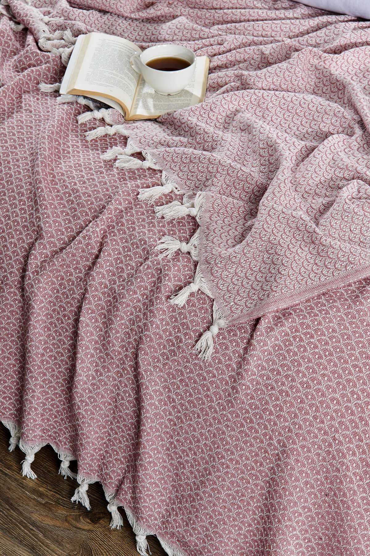 Çift Kişilik Yatak Pikesi Ekose Pudra 200 x 230 Cm