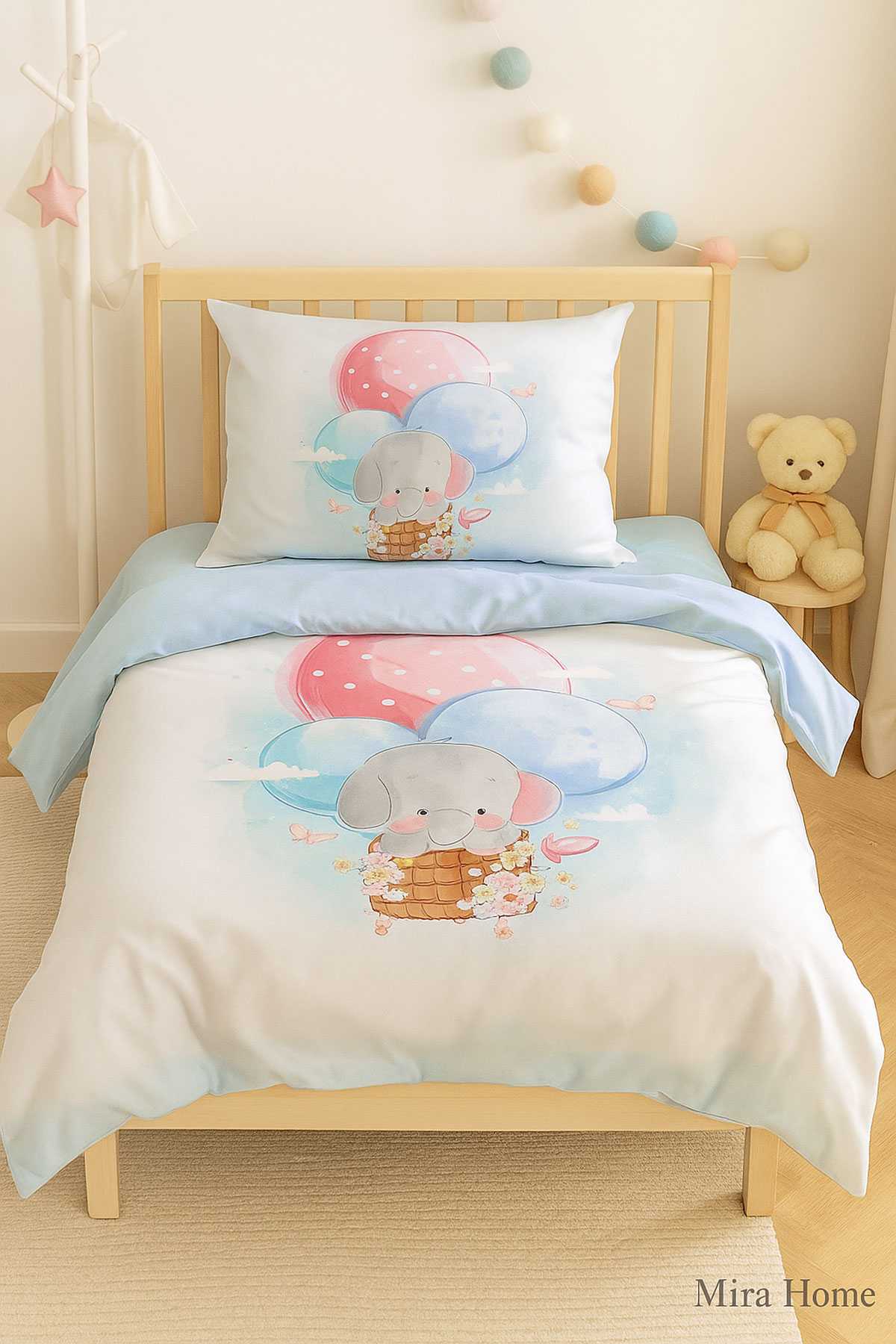Dijital Baskılı 3d Pamuklu Yenidoğan Bebek Nevresim Takımı Elephant Umbrella