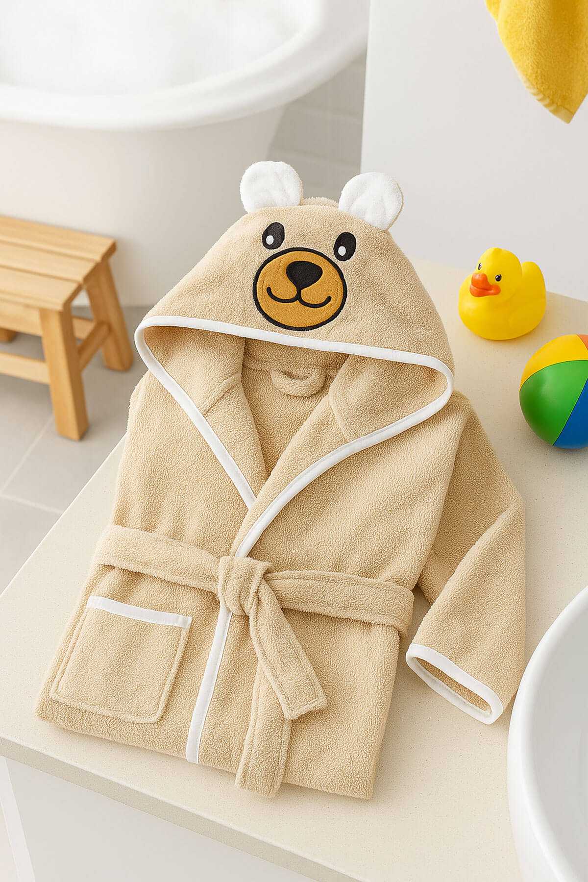 Çocukların çok seveceği bu bornoz, şirin görünümü ve konforlu yapısıyla ebeveynlerin de gönlünü kazanır.