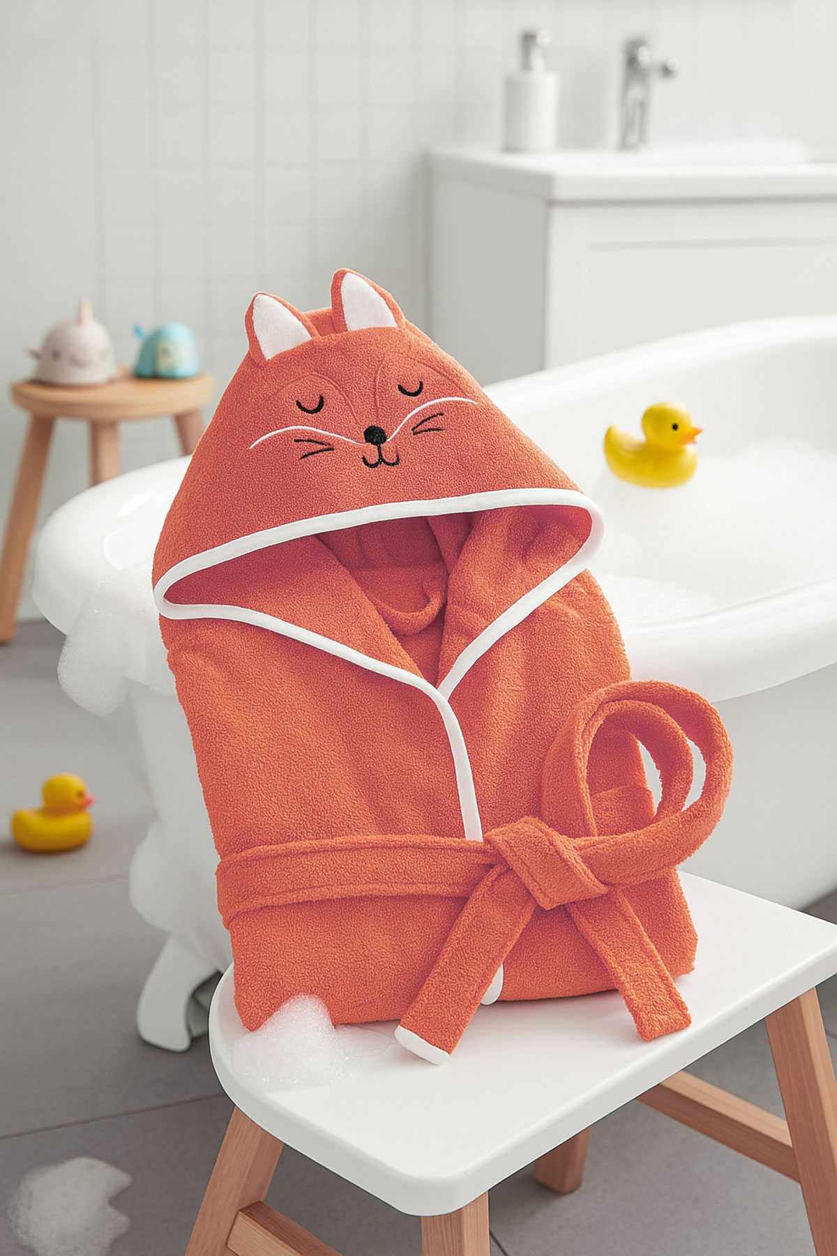 Banyodan sonra çocuğunuzu hem sıcacık saran hem de gülümseten bir bornoz arıyorsanız, Tilki Kapşonlu Çocuk Bornozu tam size göre!