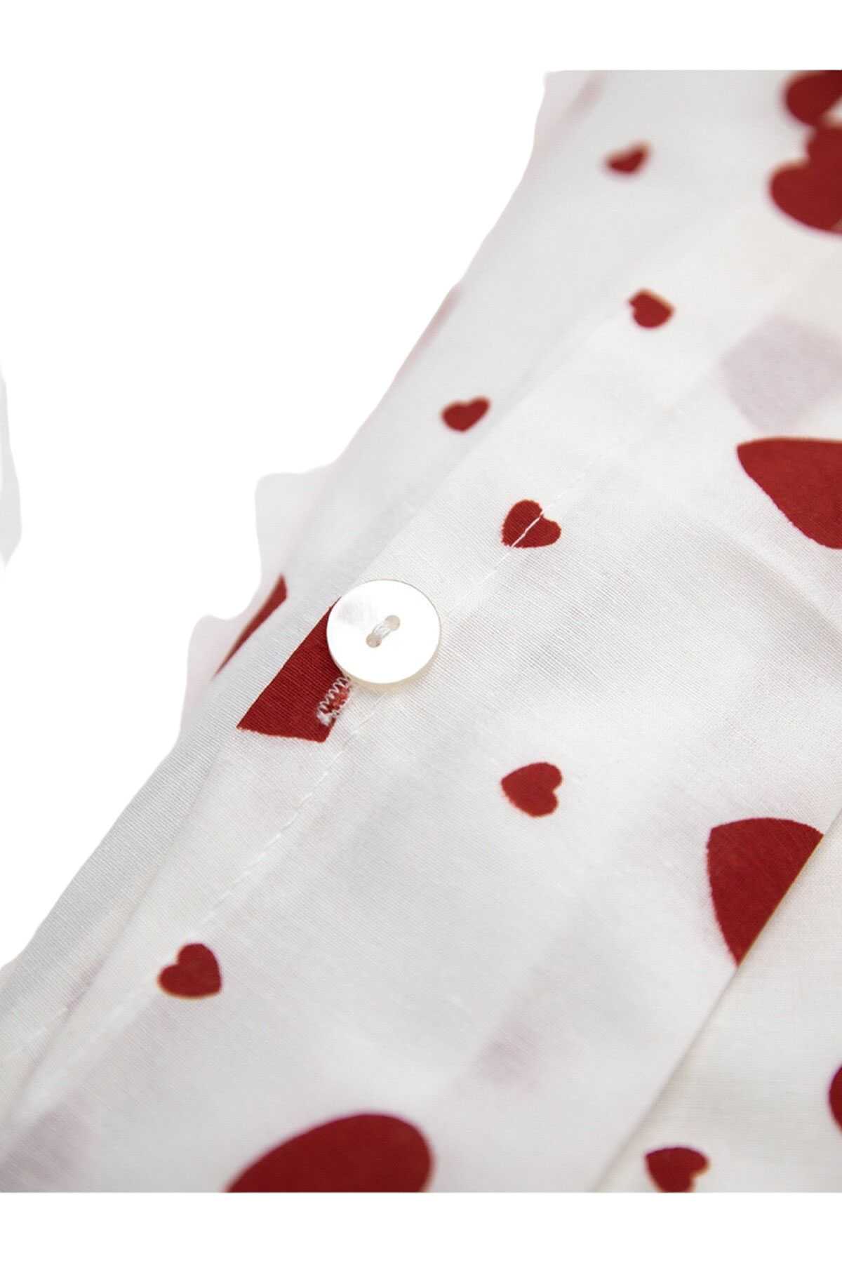 - Nevresim: 200x220 cm ölçülerinde, sevgi dolu kırmızı kalp desenleriyle süslenmiş nevresim, yatak odanıza sıcak bir atmosfer katacak.