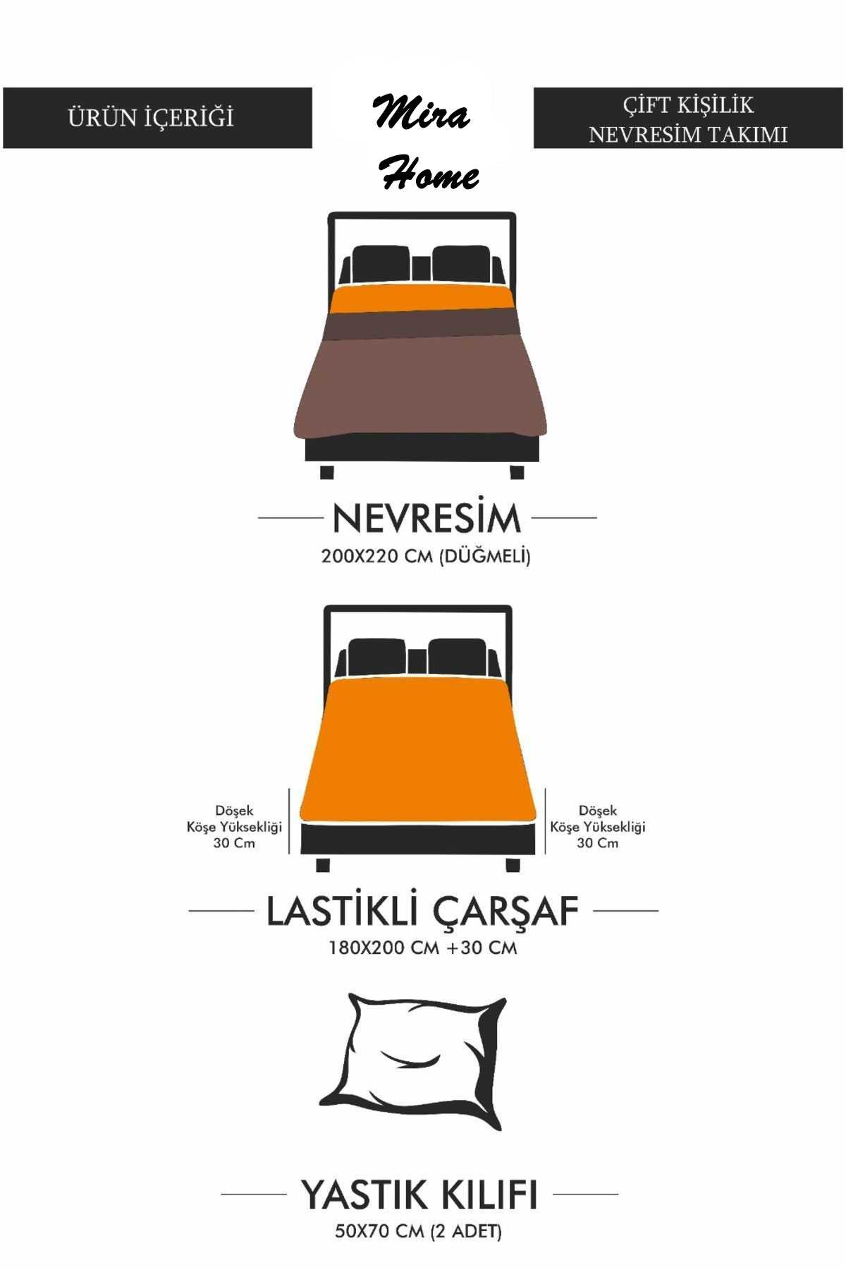 - Yastık Kılıfları: 50x70 cm boyutunda iki adet yastık kılıfı, nevresim takımı ile uyumlu şekilde tasarlanmıştır.