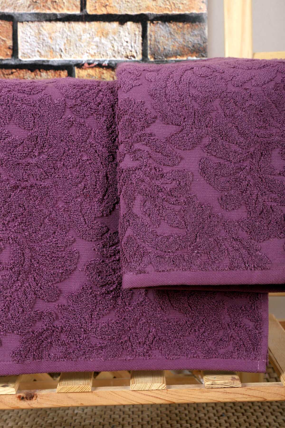 Ekose Desenli % 100 Pamuk Banyo Havlusu 70x140 Cm Mor