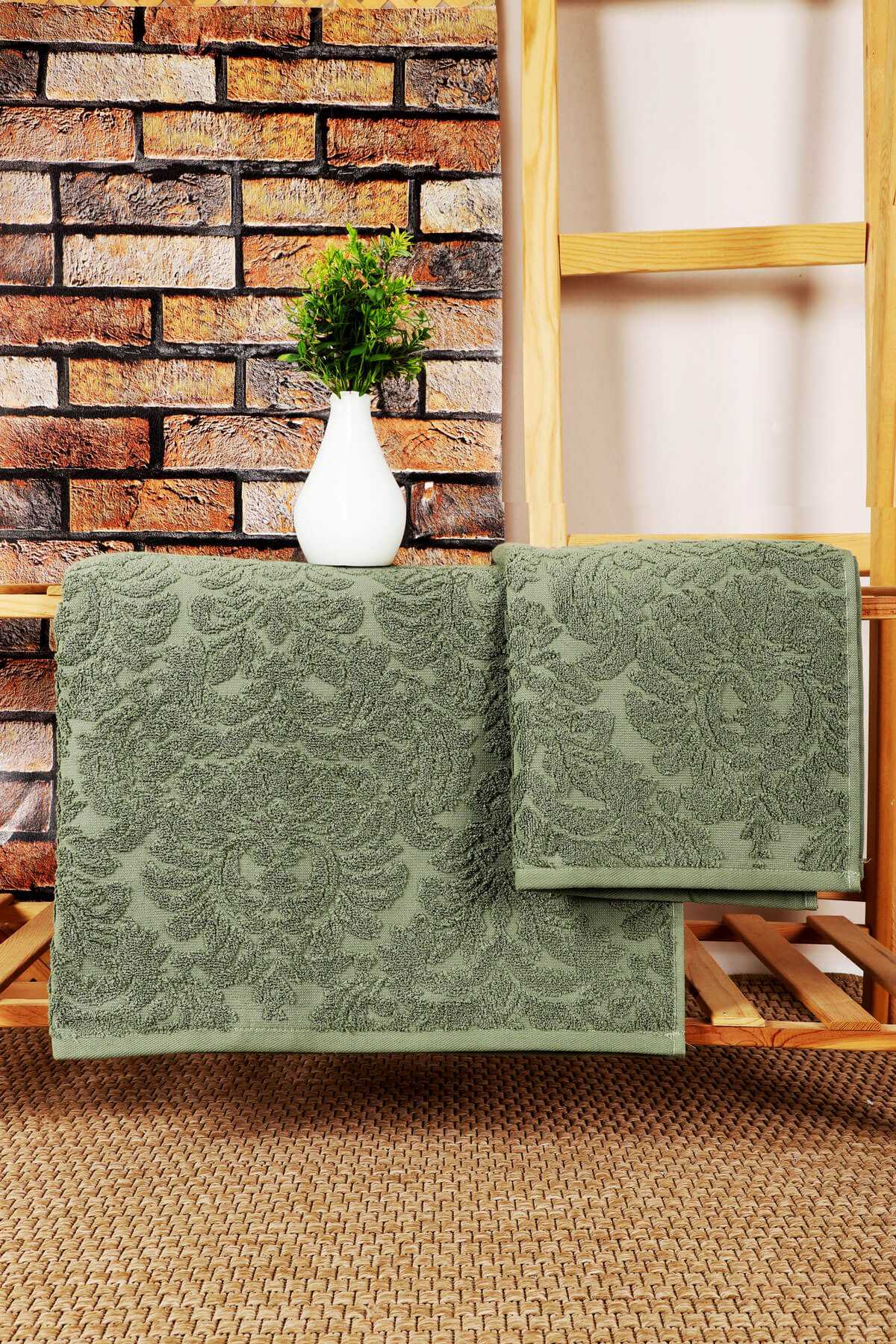 6 lı El Yüz Pamuklu Jakarlı Havlu Seti Çeyizlik 50 x 90 Cm Leo