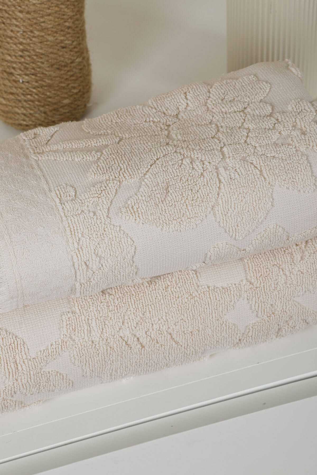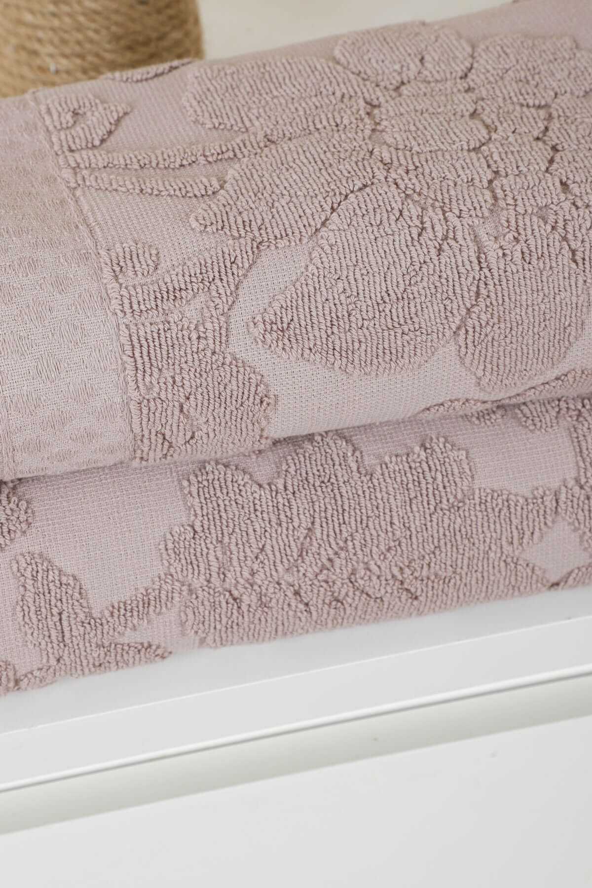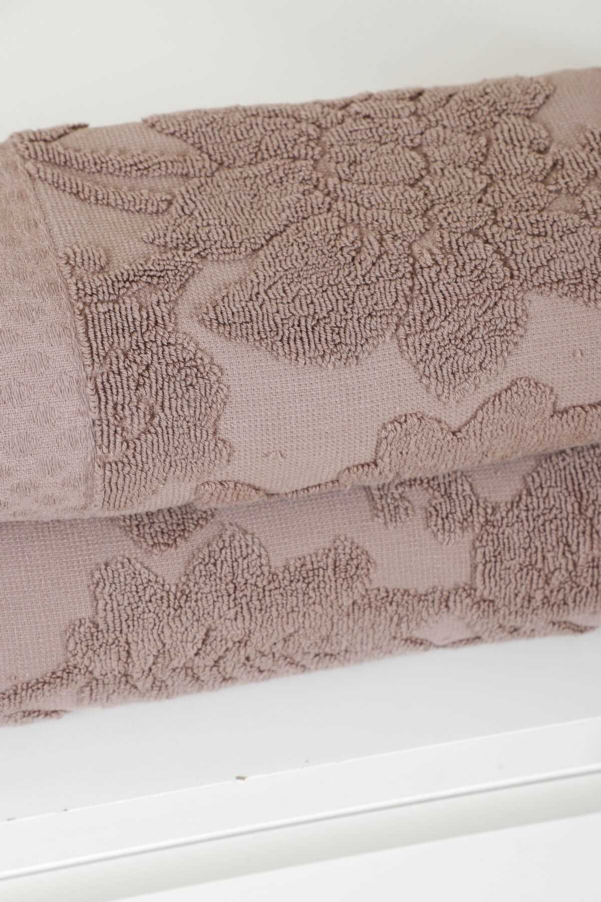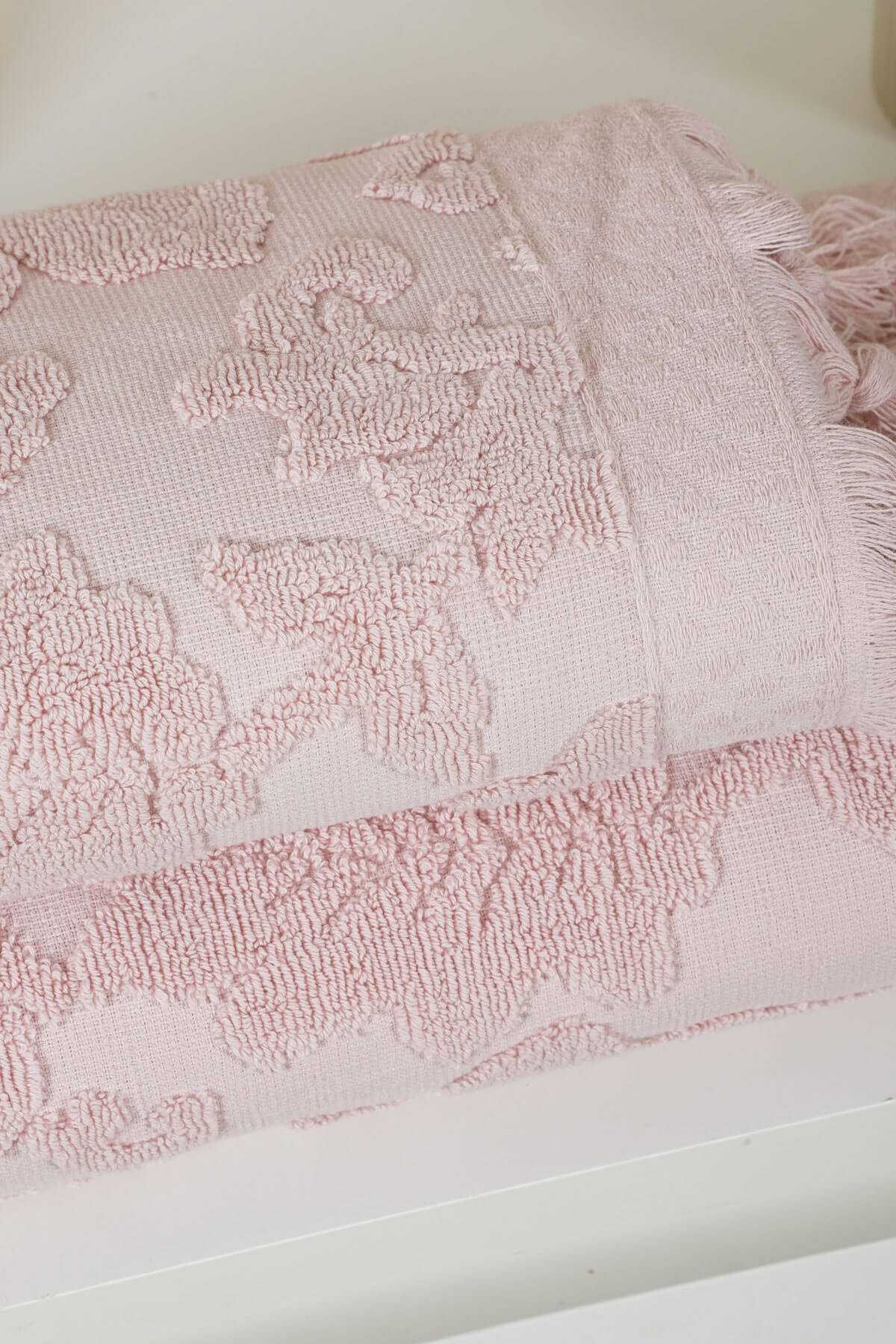 Gramajlı saçaklı jakarlı banyo havlusu takımıdır.